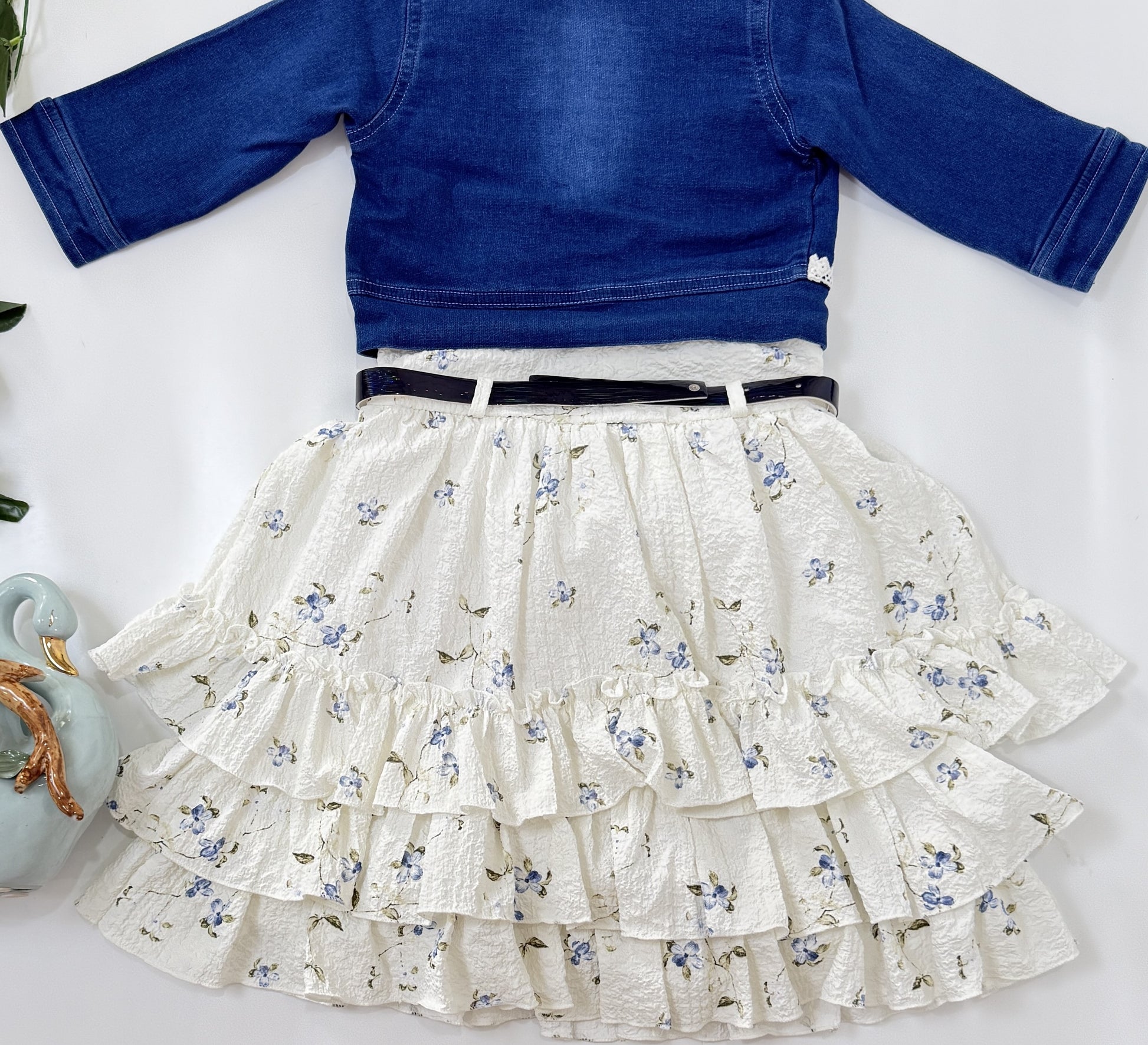 - Multi-layered ruffle skirt for added volume and charm